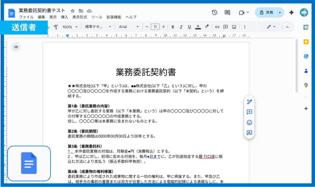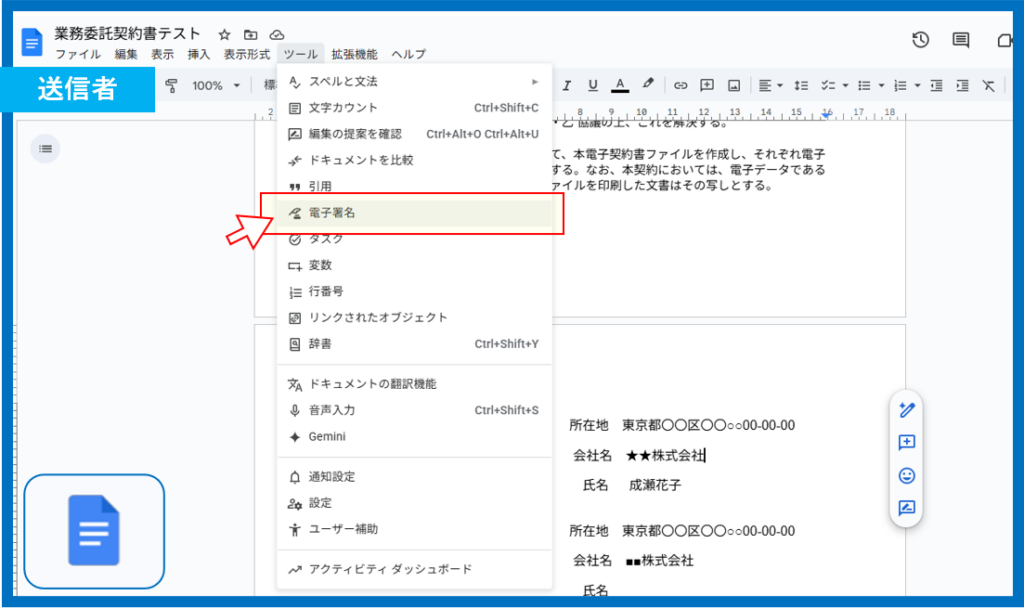 近年、電子契約の普及に伴い、Googleドキュメントにも電子署名機能が追加されました。これにより、契約書や申請書などの書類をドキュメント内で簡単に署名・共有できるようになり、作成から契約までがより時短になることが期待されます。