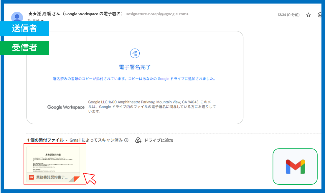 ▶「電子署名完了」通知メールから添付ファイルを確認する