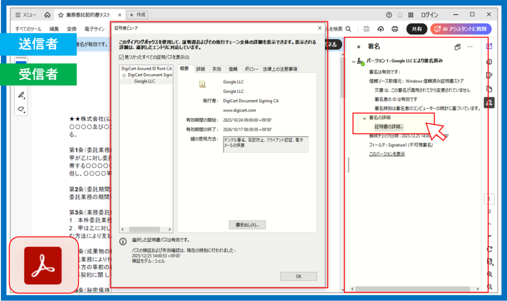 署名が完了した文書はPDF形式で最終確認が行われます。