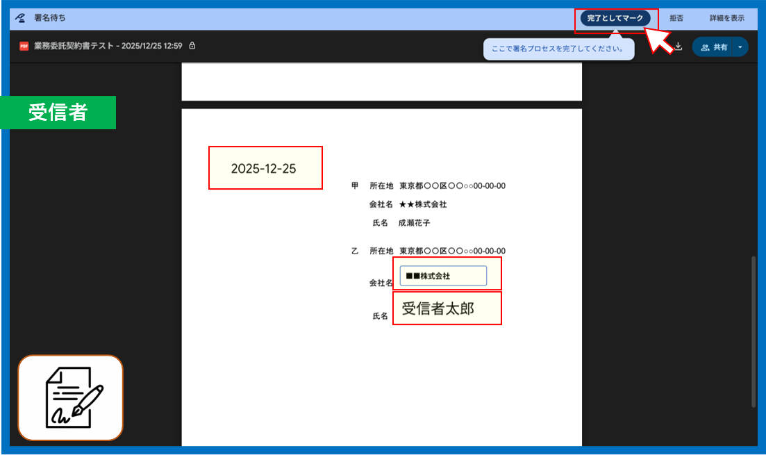 ▶画面に入力内容が反映されていることを確認し「完了としてマーク」をクリック